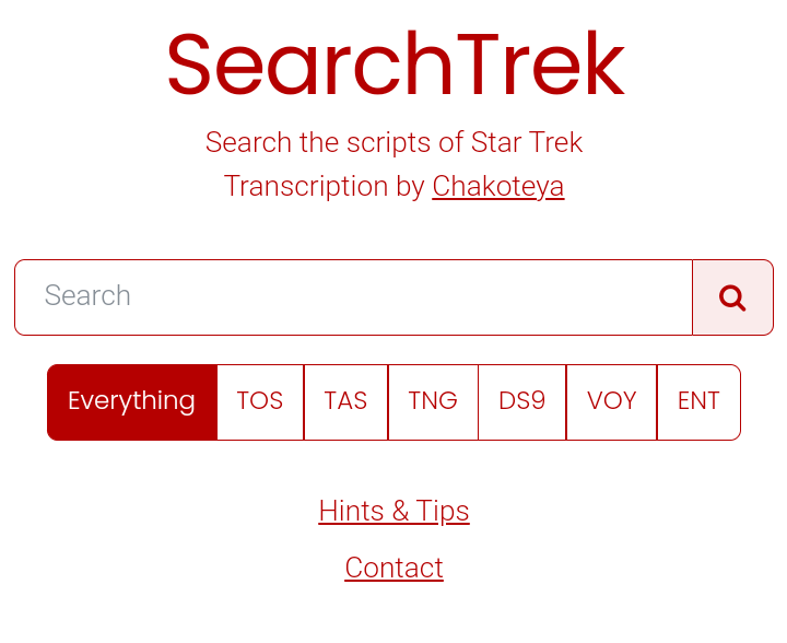 “I wrote some Python code to copy down all the scripts from chakoteya.net, then some other code to ‘parse’ them (picking out the spoken words which should be searchable, from the descriptive text etc which should not) and then stored the results in a database,” Rob said. “When you search for a word the database finds any exact matches as well as similar related words, for example searching for ‘transporter’ will also find occurrences of ‘transport,’ ‘transporting’ etc - I think that makes it more useful.”